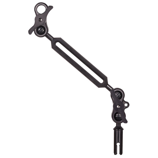 The slotted design allows for the attachment of a lightweight accessory in the middle of the extension. When used with our Sliding Ball Mount, the additional accessory is able to move up and down the length of the arm for quick repositioning during a dive.