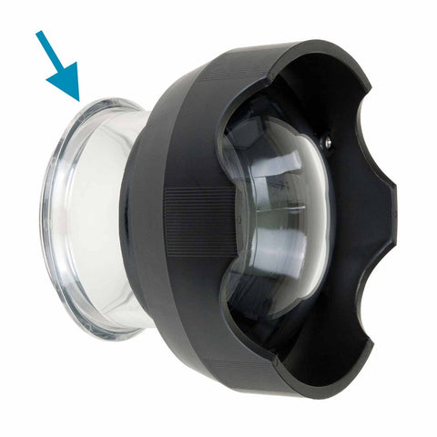 Not for use between the Lens Extension and Modular 8-inch Dome or Flat Front. Not for use with housings featuring DL or DLM port systems.