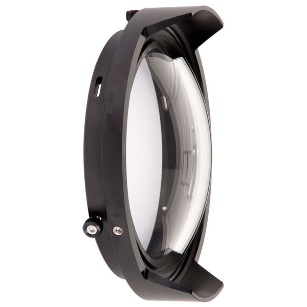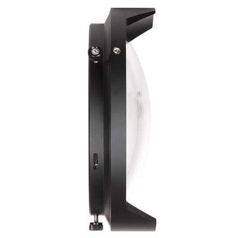 The standard 3.9" diameter optical glass port accommodates the camera's full 24-120mm zoom range underwater.