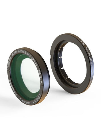 The Super Macro Lens captures stunning macro images from 1.5” to 4” (4cm to 10cm). The lens features a 2-element optical grade lens with anti-reflective coating and durable anodized aluminum construction with rubber press-on lens mount. This 52 mm lens also attaches to any underwater housing with 52mm mounting threads.