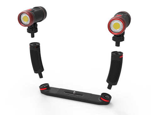 The Sea Dragon Duo 5000 includes Flex-Connect Dual Tray, two Grips, and two powerful Sea Dragon 2500 lumen COB LED lights